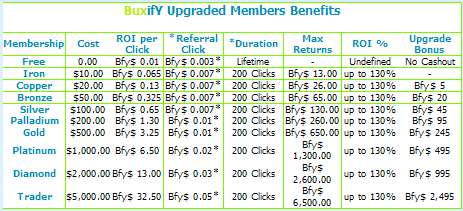 •Вы можете привлекать рефералов и получать $0.003 за каждый клик или, если рефералы покупают апгрейд, получать за клики в зависимости от стоимости вашего апгрейда